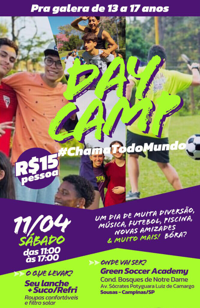 O rolê vai ser no Green Soccer Academy (chácara dentro do Condomínio Bosque de Notre Dame)
